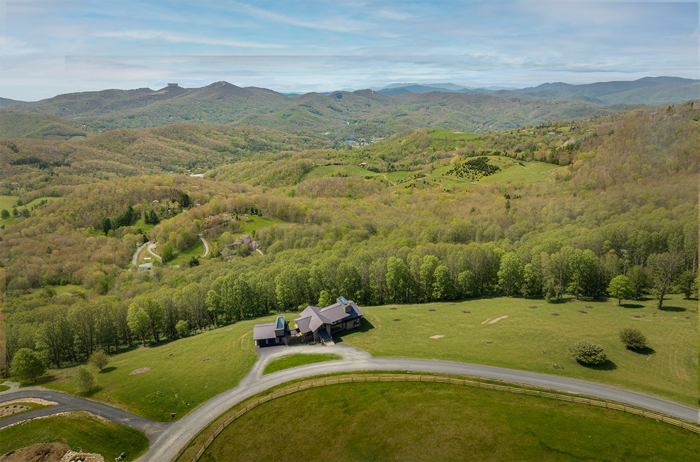 The main level lifts the living spaces above the meadow, allowing long views across the treetops to the iconic mountain ridges beyond. In contrast, the lower level provides an intimate relationship with the protected woods, where glass walls open directly to a private meadow. Together, the two levels offer dual experiences of the land—one expansive and distant, the other grounded and serene.